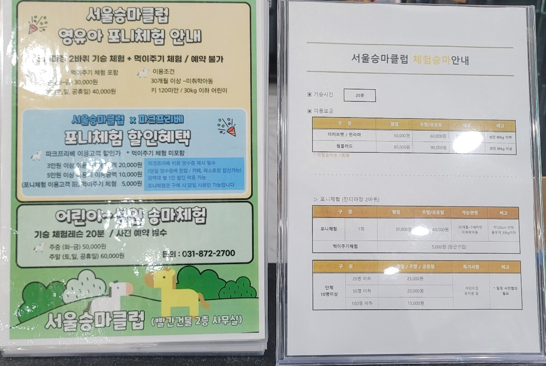 아이의 첫 말타기 도전을 해볼 수 있는 카페였어요. 말들을 관리하는 곳에는 말들이 있어서 아이가 말도 보고 사진도 찍으면서 재미있는 시간을 보냈습니다. 30개월 이상이면 서울승마클럽 체험 승마을 할 수 있었습니다. 우리아이도 그때 딱 30개월이라서 신청해서 바로 말을 타보았어요. 포니체험 1회 하는데 펴일 은 30,000원이며 주말/공휴일에는 40,000원 비용이 듭니다. 그런데 카페에서 5만 원 사용했을 경우 할인혜택이 있는데요 10,000원만 내고 탈 수 있었어요. 3만 원 사용했을 경우에는 20,000원을 내고 말 타는 체험을 할 수 있습니다. 그리고 먹이 주는 체험은 따로 5,000원을 구매해야 합니다. 우리 아이가 처음 말을 타서 많이 들떴는데 실제로 태워보니 무서웠는지 가만히 움직이지 않고 고삐를 꽉 쥐고 있더라고요. 눈말 떼굴떼굴 굴리면서 얼어 있었어요. 그래도 옆에서 지도해 주는 분이 잘 잡고 2바퀴를 돌아주셨어요. 그리고 직접 바가지안에 당근을 넣어서 말들에게 주었는데 아이가 참 신기해하고 좋아했습니다. 말들도 집접 보고 타보면서 먹이도 주니 뿌듯한 하루였어요. 그리고 주변 산책로가 있어서 아이와 함께 산책이기 좋은 코스였습니다.