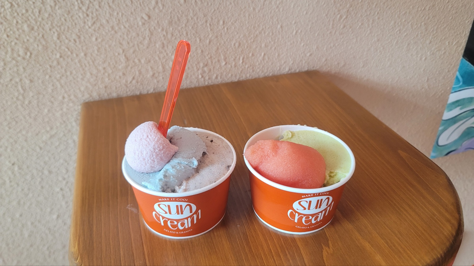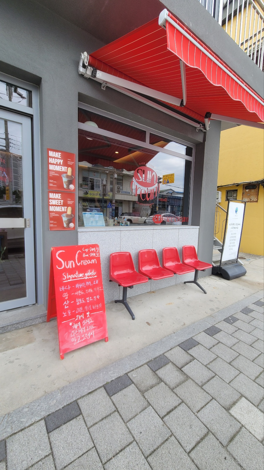아이와 신나게 바다에서 놀다보니 입이 심심, 후식먹을 타임입니다. 약간 날이 더워서 시원한 아이스크림이 먹고 싶어서 찾아본 근처에 위치하는 SUN CREAM 젤라또 아이스트림 전문점입니다. 외관에서 가고싶도록 생긴 이쁜 빨간색의 아이스크림점이었습니다. 내부에는 아기자기하게 꾸며져 있어서 아이 사진도 찍어주었네요. 여기서 새로운 아이스크림의 맛을 먹어보았어요. 사장님도 친절하시고 아이스크림도 맛나게 먹고 좋은 추억 쌓고 가네요^^