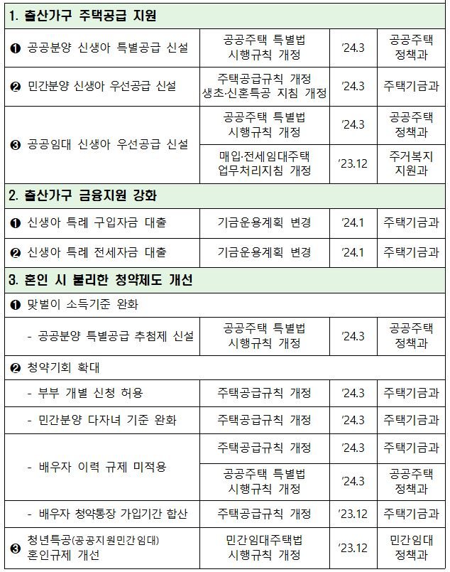 생애최초특공, 신호부부특동시 출산가구에 우선공급
