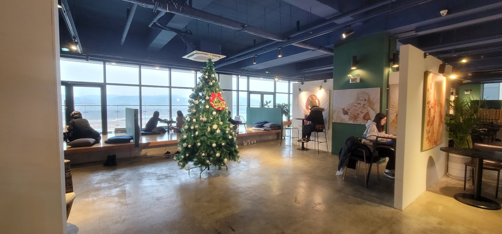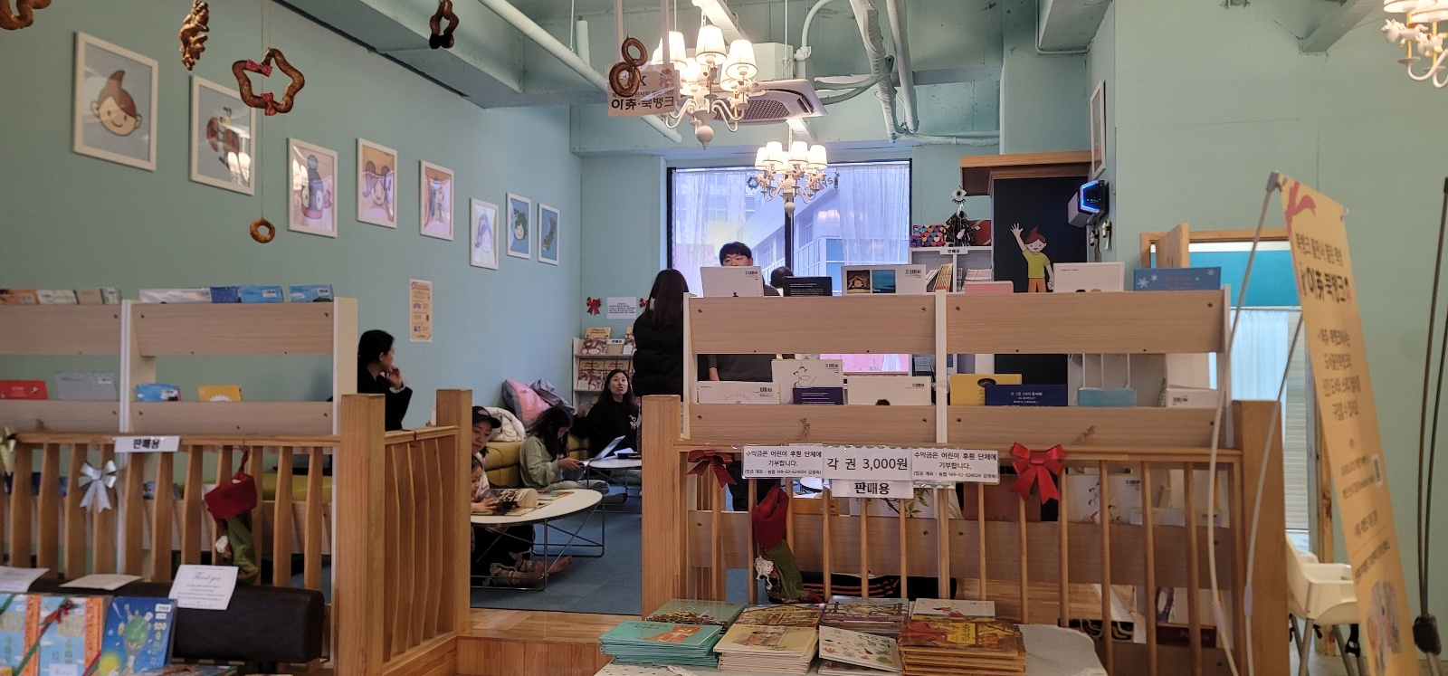 2층은 야외 풍경을 볼 수 있는 테라스가 있어서 힐링이 되었습니다. 3층으로 어른들의 힐링과 쉼의 공간이었습니다. 미술 공간으로 미술작품들을 감상할 수 있고 편하게 앉을 수있는 자리가 있었어요. 여기는 노키즈존으로 조용하게 작업하시는 분들이 있었어요. 2층은 아이들이 뛰어놀고 재미있고 유쾌한 공간인데 3층은 그와 대비로 어른들을 위한 조용하고 쉼이 있는 공간이었어요. 그리고 어른들용 굿즈들을 판매하고 있었어요. 깜찍한 펭귄을 모티브로 한 컵, 가방, 노트, 펜 같은 팬시용품부터 선물용 커피, 치즈케이크도 팬매하고 있어 선물용으로도 괜찮을 것 같습니다.