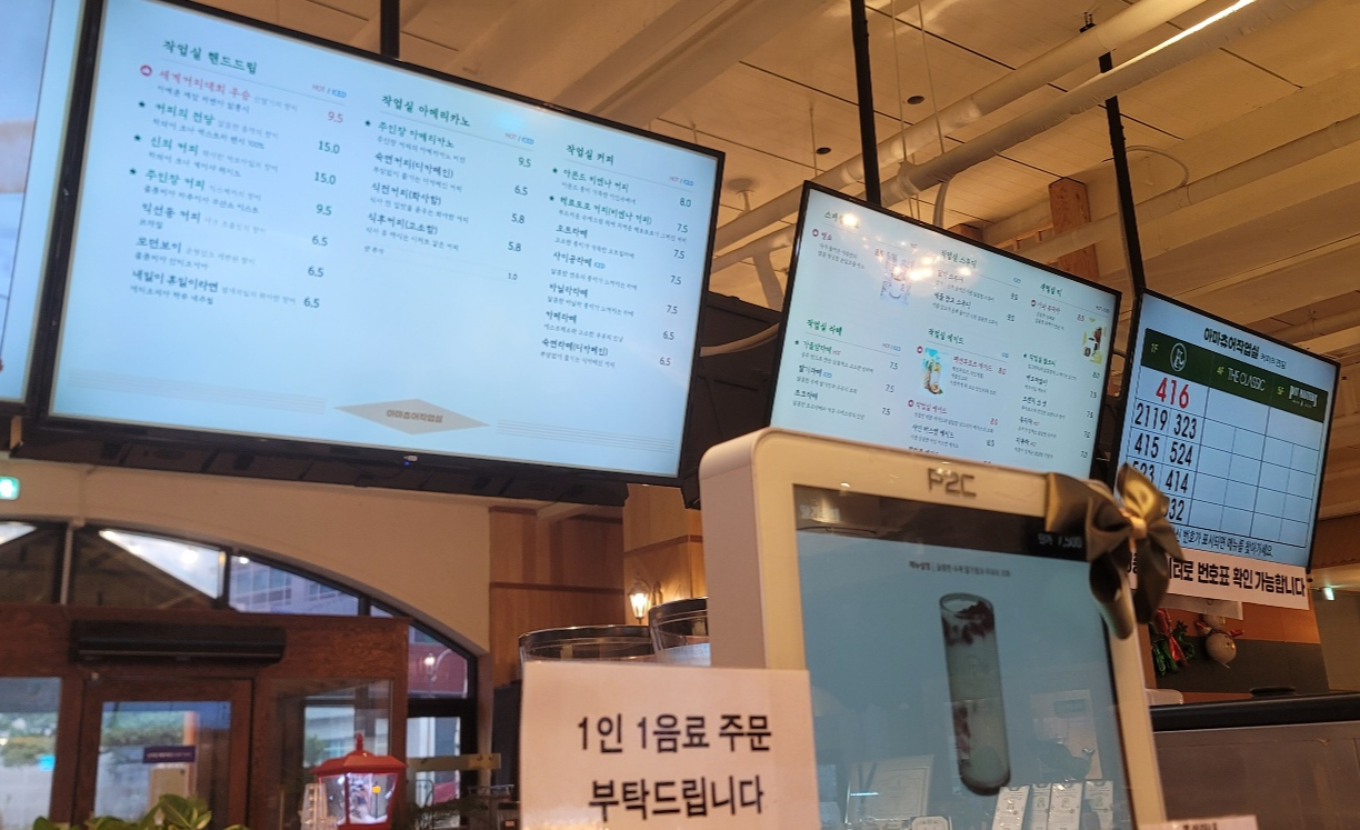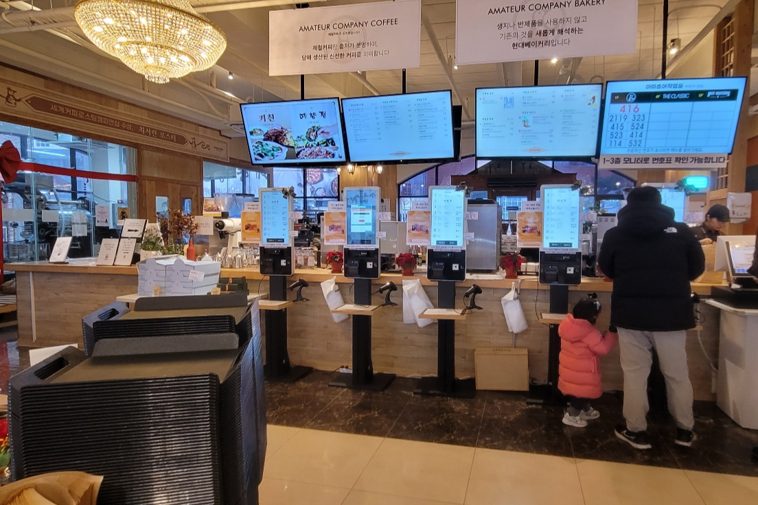 아이와 함께 갈만한 카페를 찾으신다면! 4살 우리 딸과 함께 간 시흥에 있는 아마추어 작업실을 소개해드리겠습니다. 주차장은 건물 지하 1층~2층에 주차하시면 되고요. 1층 키오스크에서 메뉴 주문하시면 됩니다. 층별로 1층은 작업 공간으로 아마추어 작업실 음료와 베이커리를 주문하고 굿즈, 원두 등 상품을 판매하고 있어요. 2층에는 동화공간으로 아이들과 함께 오면 좋은 층으로 동화전시와 오두막 미끄럼틀이 중심이 되는 공간입니다. 향과 디저트가 만들어지는 베이커리실이 있으며 아이들을 위한 수유실과 독서공간이 있습니다. 3층은 미술 공간으로 써니스튜디오 도자기 공방이 있습니다. 4층은 키친 양식점이 있고 5층은 예향정 한식전문점이 있습니다. 6층에는 루프탑이 위치하고 있었습니다.