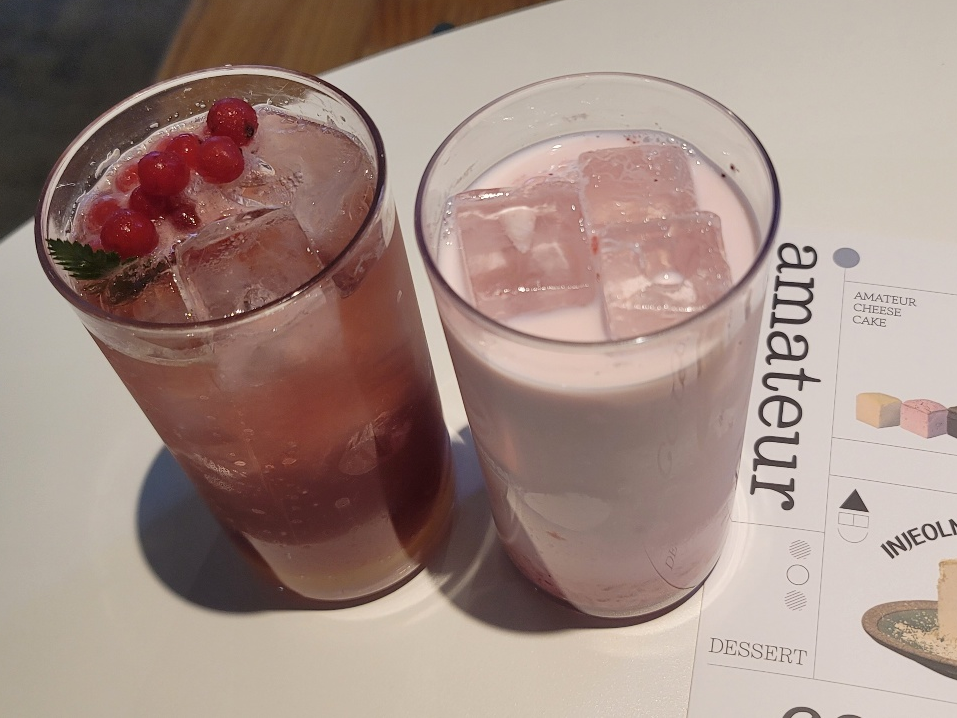 식사부터 커피까지 주문이 가능하며 빵, 케이크도 구매하실 수 있습니다. 저는 딸기 라떼를 먹었는데 아이도 같이 마시면서 상큼하게 마셨습니다.