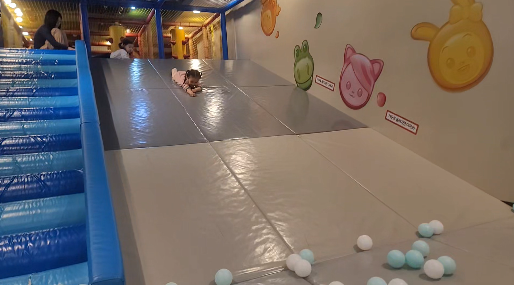 아이와 함께 갈 키즈카페를 찾으신다면 코코몽키즈랜드 송파점을 추천드려요. 비용은 아동 1인당 2시간 이용권은 19,000원입니다. 성인은 5,000원 비용이 듭니다. 단체예약으로 변동사항이 있으니 직접 문의해보세요. 5월 행사 할인을 하고 있다는 소식! 주말/ 공휴일에는 2시간 이용시 17,900원에 이용하실 수 있으니 5월달에 한번 가보시는 것을 추천드려요. 아이가 코코몽 캐릭터를 좋아하기도해서 들어서자마자 바로 뛰어들어가서 어디로 갔나 한참을 찾았어요. 뻔한 키즈카페이기보다는 아이가 직접 움직여서 놀 수 있는 놀이감이나 놀이시설이 많았습니다. 서진이가 좋아했는 놀이기구는 줄을 타고 올라가서 터치버튼을 누르면서 신나게 놀았습니다. 그리고 자동차를 운전하는 길도 있고 공이 차있는 공놀이 풀장도 있는데 그곳에서 아이가 왔다갔다 이동하면서 대형 미끄럼틀에서 신나게 뛰어 놀았습니다. 안전하게 푹신푹신한 매트로 미끄럼틀이 있어서 안전하게 놀 수 있었습니다. 2시간 꽉 채워서 아이가 재미있게 놀았어요. 다음에 또 와도 아이가 재미있게 놀 것 같습니다.