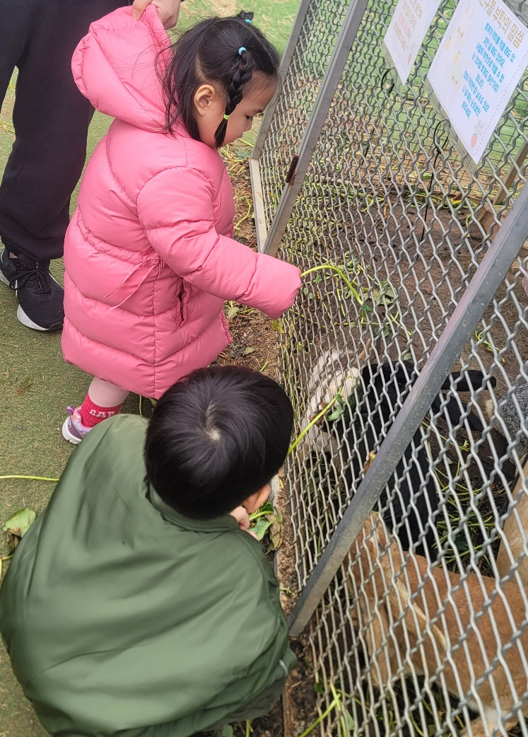 딱 도착하였는데 비닐하우스 앞에 토끼 우리가 있었어요. 아이들이 토끼풀을 주고 토끼가 신나게 먹고 있더라구요. 우리 아이도 한참을 토끼와 대화하면서 토끼먹이주는데 서서 계속 먹이더라구요. 토끼들이 생각보다 큰데 너무 가까이 가면 물수도 있으니 옆에서 주의만 줘도 될 것 같아요.