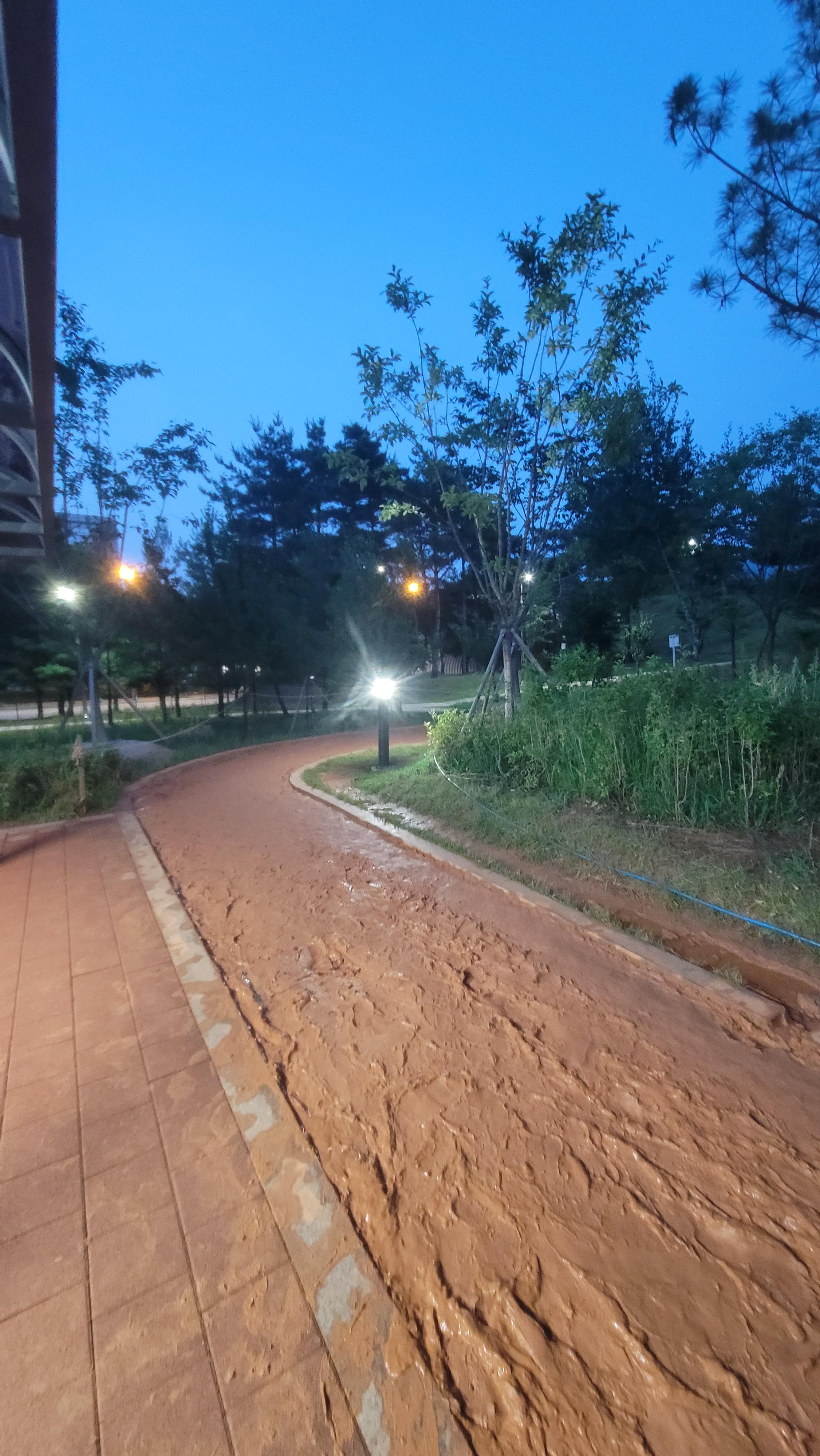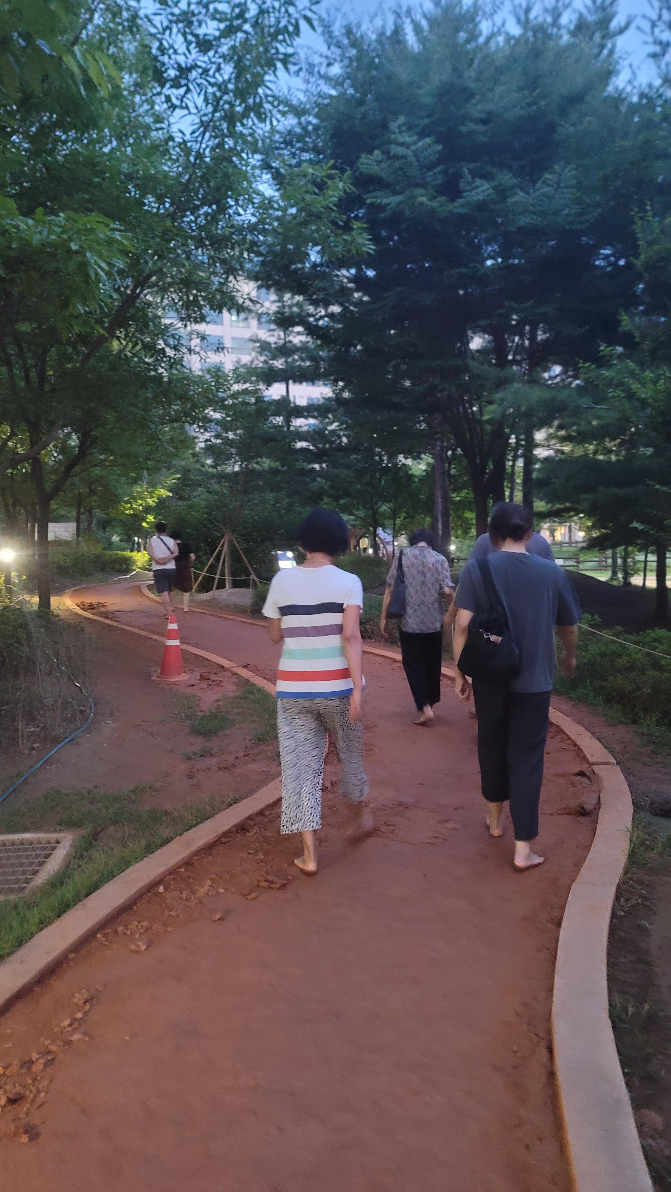 언덕을 건너서 도착한 황토길 입구에는 화장실과 발을 닦을 수 있는 수돗가가 있었습니다. 황토가 땅속의 해독제라고도 불리고 있는데 해독제를 맨발로 걸으면 몸에 좋은 효과가 줄 것입니다. 그리고 여기 황토길은 관리가 잘되어서 깨끗하고 정돈되어있어 사용하는데 불편함없이 사용할 수 있었습니다. 조금 미끄러운 구간은 조심조심 걸어서 이동하였는데, 천천히 걸으면서 부드러운 황토를 밟으니 기분이 좋아졌습니다. 나이드신 분들도 걸어다니면서 건강해지는 기분과 함께 힐링할 수 있는 코스였습니다.