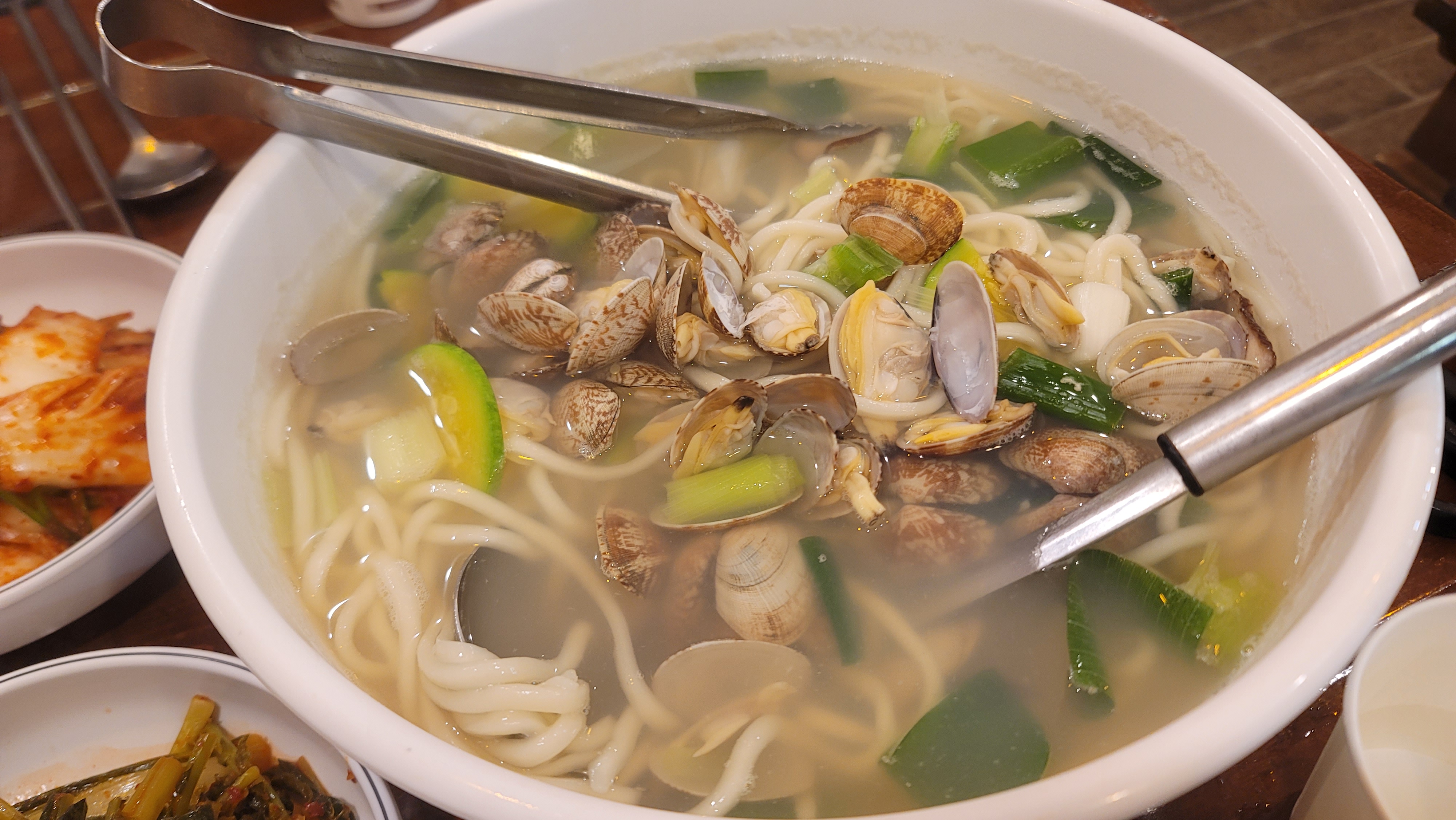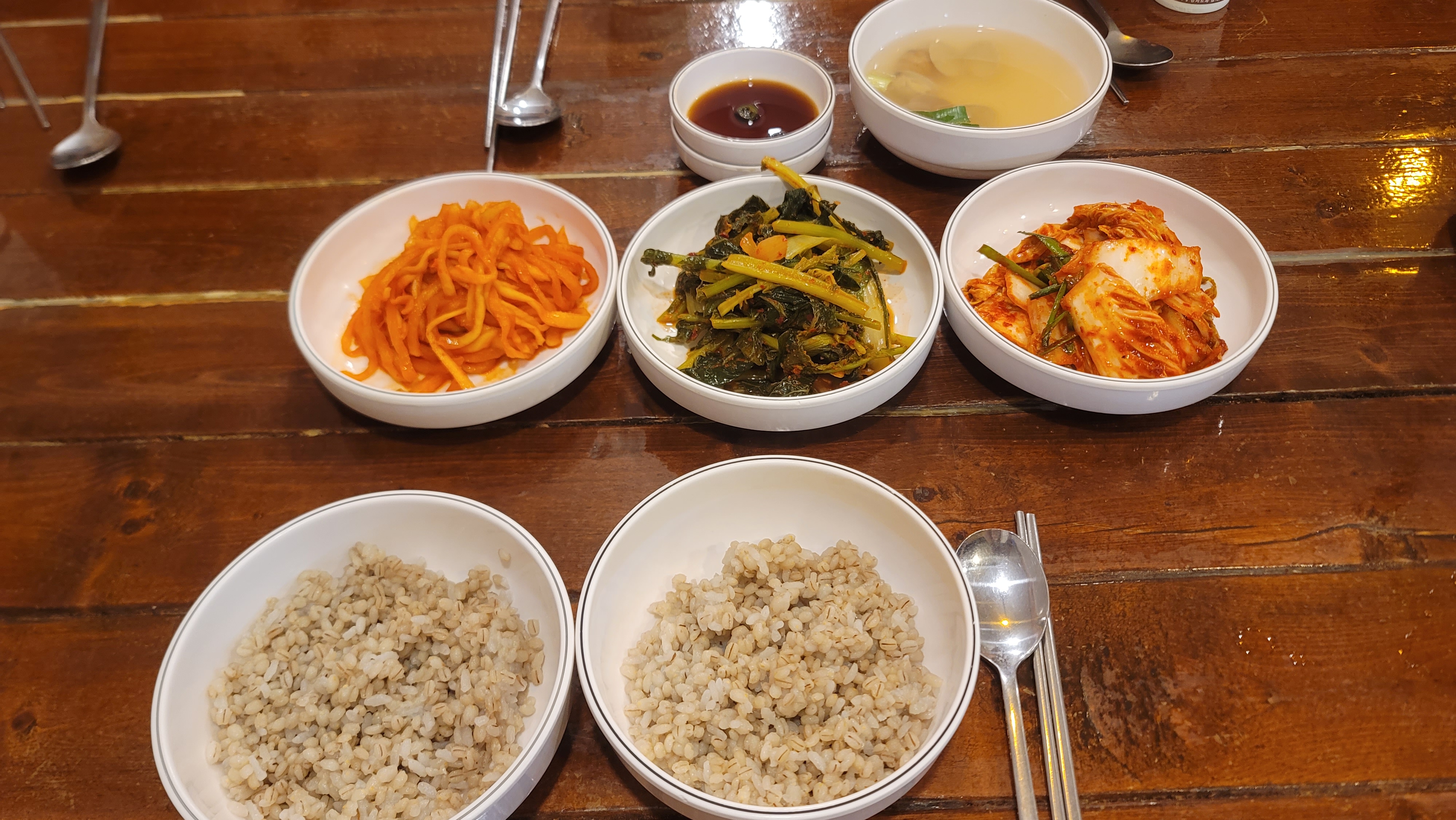 반찬은 열무김치와 김치등 맛깔나서 보리밥과 함께 참기름과 비벼먹었는데 맛이있었습니다. 그리고 해물파전은 바싹함 식감에 순식간에 따끈따끈할때 먹었습니다. 그리고 바지락칼국수는 쫄깃쫄깃 칼국수를 후르륵 먹었네요. 가족과 함께 다양한 메뉴를 먹을 수 있어서 좋았습니다.