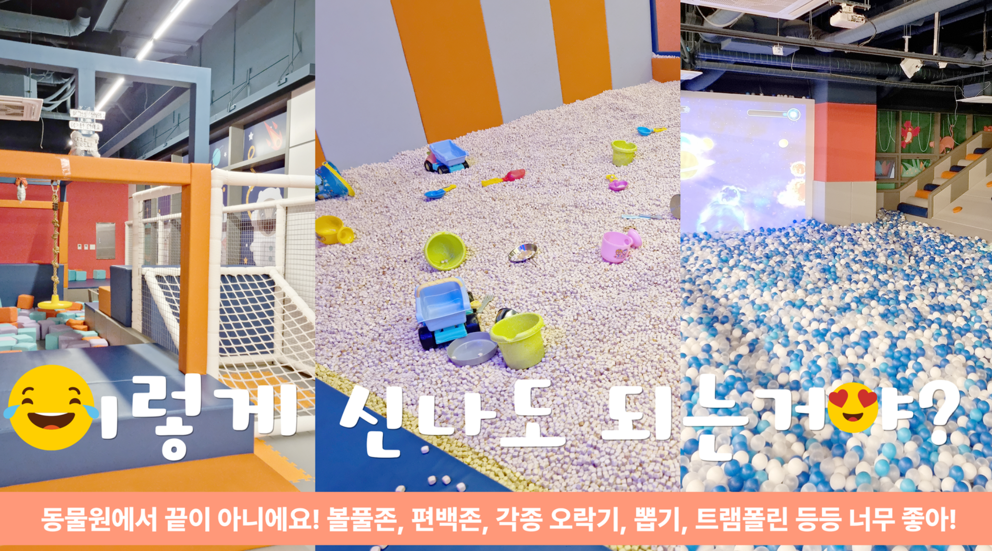 동물과 교감놀이를 한 후 아이가 맘껏 뛰어놀 수있는 공간인 키즈카페가 2층에 위치하고 있어요. 넓은 공간에 아이가 신나게 뛰어놀기 좋았습니다. 부모들은 바닥에 편히 앉을수 있도록 테이블과 큰쿠션이 있어 누울수도 있었어요. 아이가 뛰어노는 것만 보면서 편히 쉬었습니다. 아이가 소꿉놀이하며 장난감가지고 잘 놀더라구요. 열려있는 공간으로 자유롭게 왔다갔다 할 수 있었어요. 키즈카페에서 거의 1시간 넘게 놀았습니다.