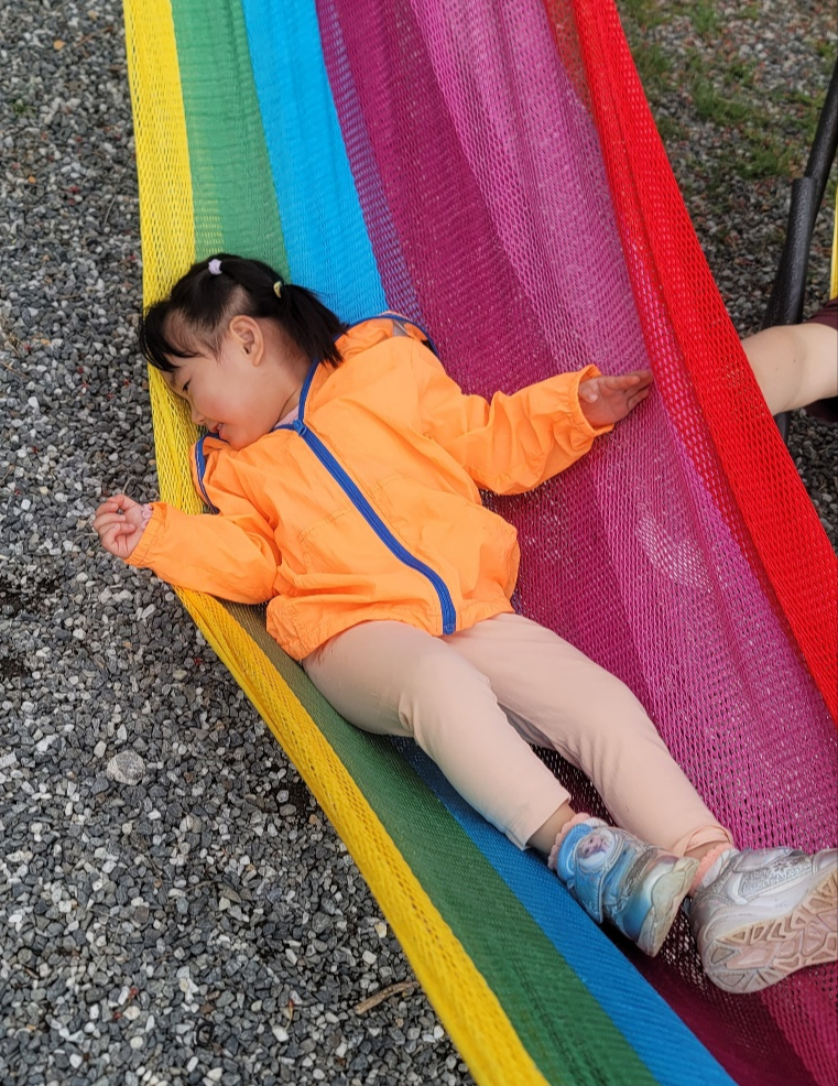좀 더 올라가면 바로 해먹이 있었어요. 그냥 지나칠 수 없지요. 우리 꼬맹이는 신나게 해먹을 흔들흔들 탔어요. 남편도 바람도 선선하게 불고 잠시 휴식을 취했네요. 신선놀음이 따로 없었습니다.