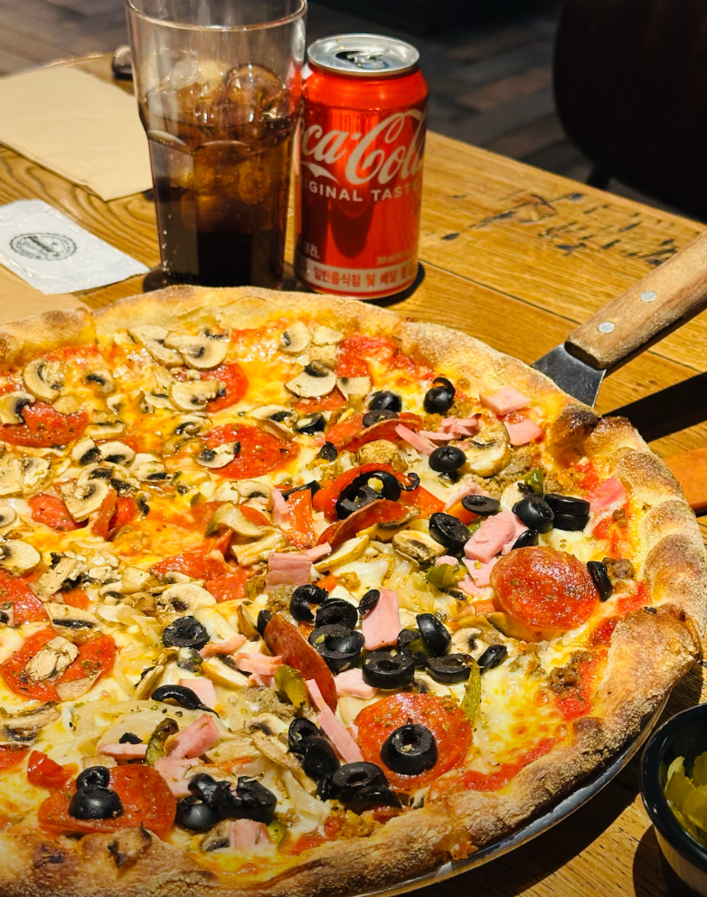 가격적으로 부담스럽지 않으면서 호텔 이색적인 분위기를 느끼고 싶다면 바로 폴리스 피자를 추천드려요. 아이먹을 이유식을 따로 챙겨가서 저희 부부만 먹어도 되기에 뭘 먹어야 맛있다고 소문이 날지 고민했다가 찾은 곳이예요. 여기 운영 시간은 11:30~22:00까지 운영하고 있었구요. 브레이크타임은 오후 3시부터 5시까지 였습니다. 라스트 오더는 저녁 9:00시 까지이니 참고 하시길 바랍니다. 피자를 먹고 싶은 맛을 반반으로 시켜 먹을 수있는 장점이 있었어요. 한가지맛으로 먹으면 아쉬운데 반반으로 새로운 맛의 피자도 먹어보고 샐러드도 주문이 되어 다양하게 시킬 수 있었습니다. 반반세트로는 페퍼로니&하와이안 / 마르게띠&뉴욕치즈 / 뉴욕 슈프림&페퍼로니, 머쉬룸 / 포테이토 베이컨&스파이시 체다치킨 / 갓파더&스페니쉬 초리조로 세트메유가 있습니다. 13인치와 17인치로 있어서 많은 양을 선택할 수 있습니다. 파스타는 치킨 까르보나라, 새우 로제파스타, 토마토소스 미트볼 파스타가 있으며 사이드 메뉴로 치킨시커샐러드, 포리스 미트볼스, 하우스 샐러드, 갈릭치즈프라이즈, 버팔로 윙스, 스윙 바베큐 읭스가 있습니다. 또한 음료와 다양한 맥주가 있어 같이 곁들어 먹으면 좋을 듯 합니다.