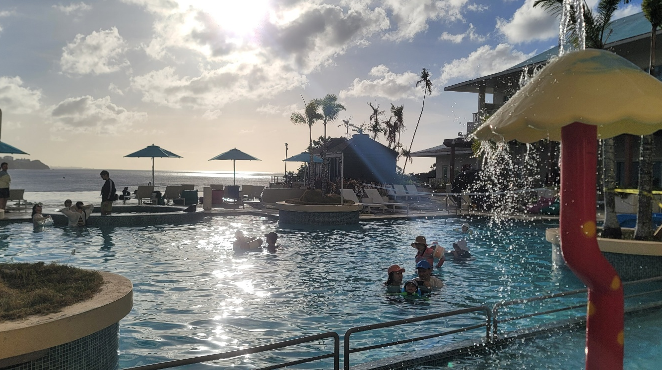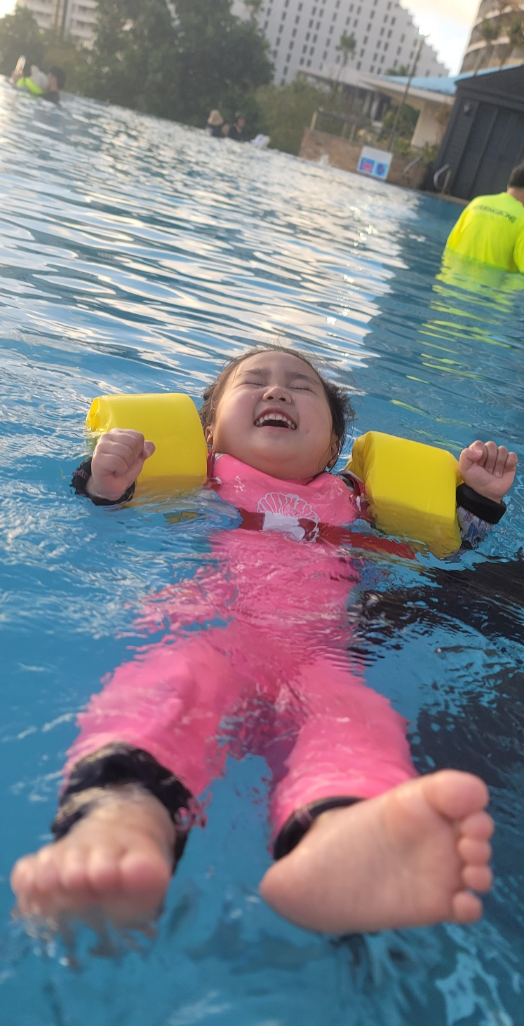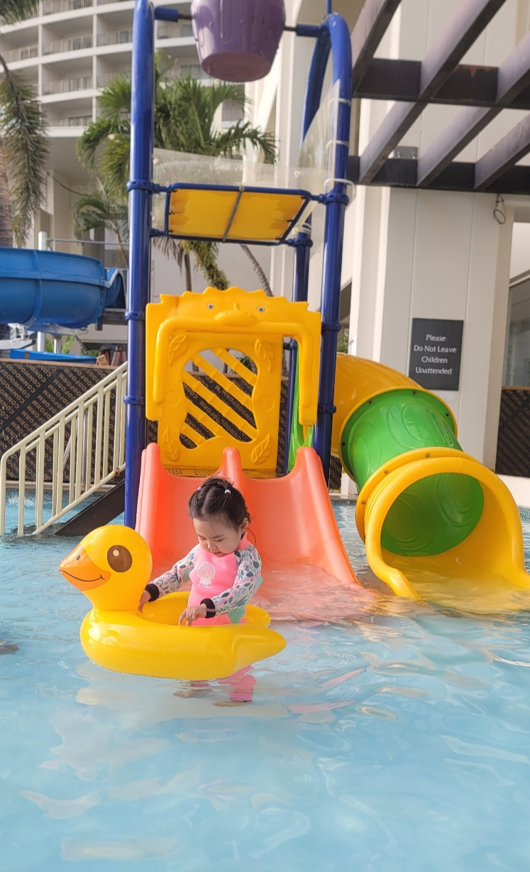 아이들이 놀 수 있는 키즈 카페 공간이었어요. 내부에는 게임할 수있는 풀스와 미끄럼틀, 장난감, 책이 있었어요. 그렇게 많고 다양하진 않았지만 1시간 정도 놀긴 괜찮았던 것 같아요^^ 본격전인 물놀이 시작! 우리 아이는 여기서 놀기에 딱이었어요. 동선도 짧고 효율성이 높은 곳이었어요. 그리고 수영장 끝에는 바다를 바라볼 수 있는 뷰가 있었어요. 여기서 사진 찍을 스폿이었어요^^ 노을이 지는 풍경이 너무 멋있었어요. 캬~ 아이도 저 팔튜브를 끼니 너무 신나 했어요. 몸이 둥둥 뜨니 더 신났습니다. 세탁실&건조실이 위치하고 있어 여기에다 밀린 빨래들을 모아서 빨았습니다. PIC 내에는 없었는데 롯데호텔에서는 무료로 사용할 수 있도록 되어있었어요. 한국인들의 빠르게 쉽게 이동도 편하게 되어있었어요.