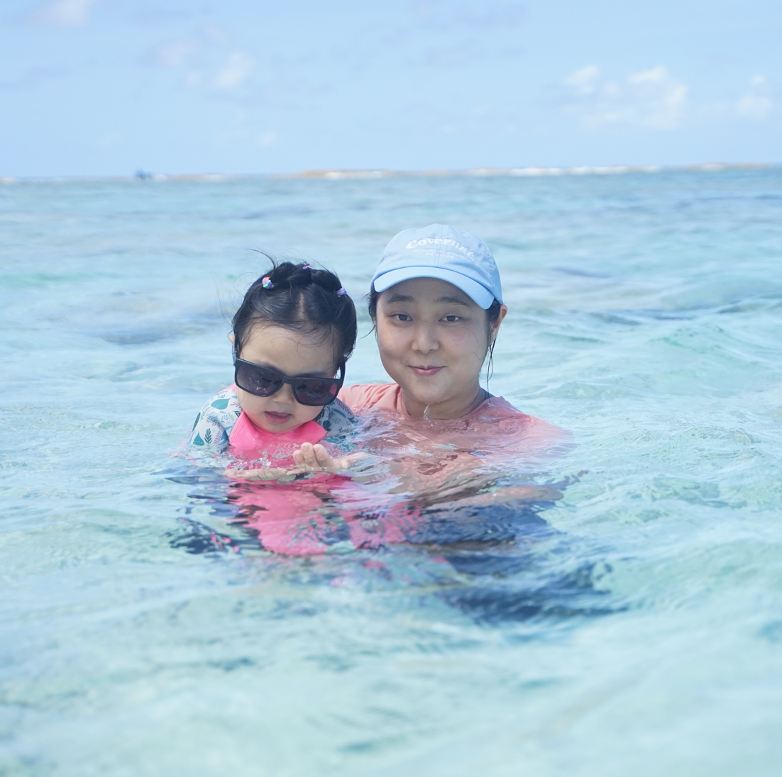 리티디안 해변에서 아이와 함께 신나는 물놀이