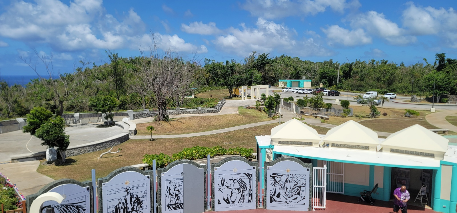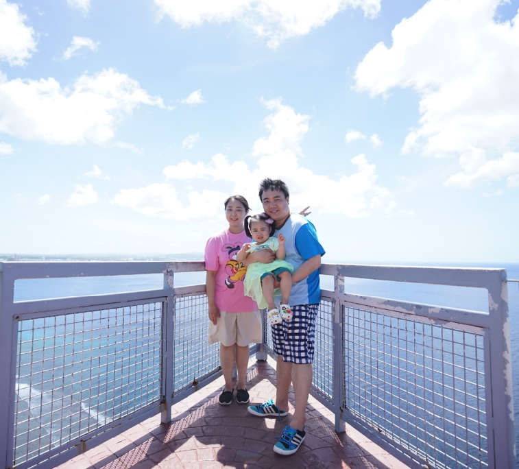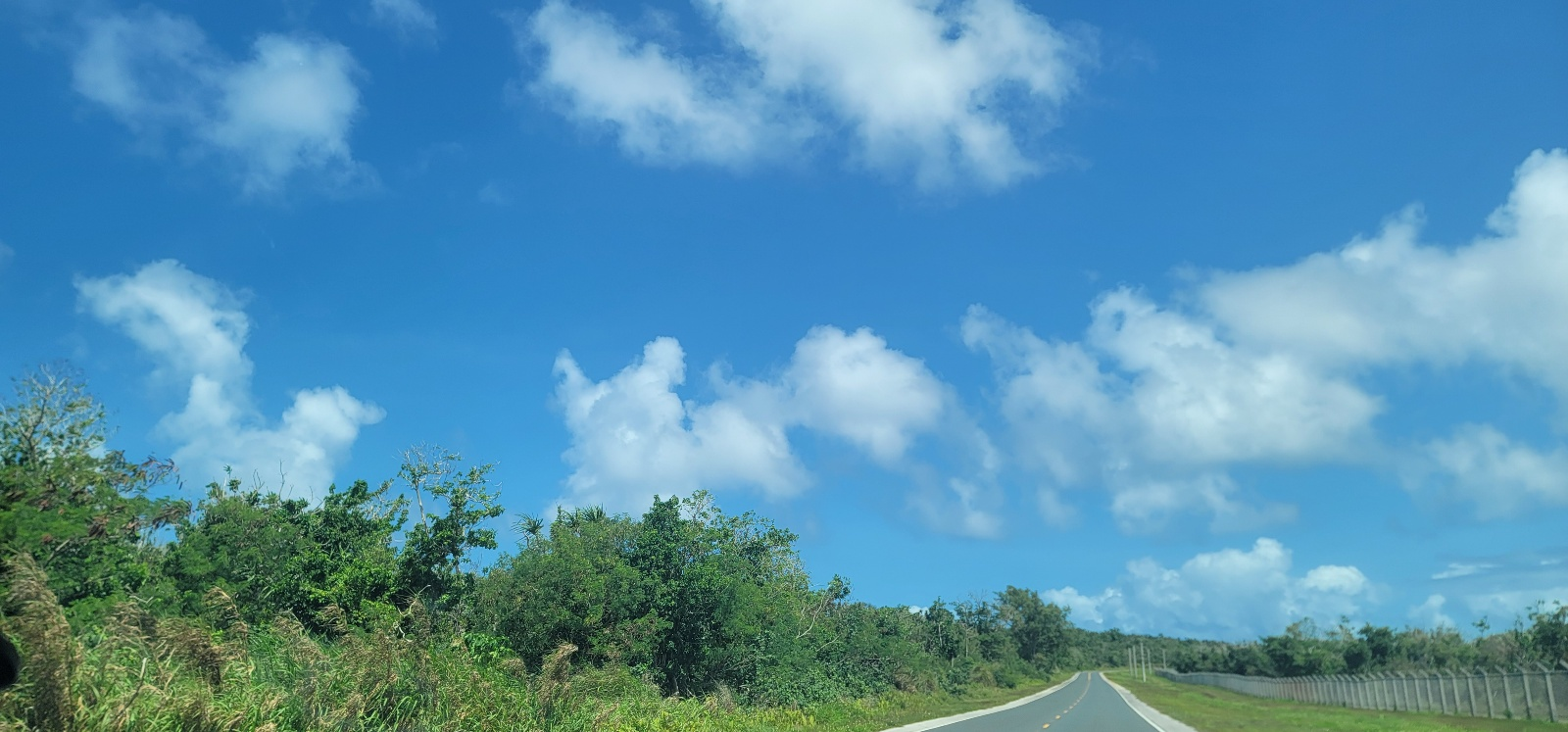 렌터카를 어제부터 대여해서 오늘은 본격적으로 괌투어를 위해 이동했습니다. 아침은 롯데호텔 조식에서 배불리 먹고 출발했습니다. 뒷좌석의 우리 서진이 안착했어요. 아이 카시트도 같이 렌트할 수 있었습니다. 에메랄드 바다색을 보러 더 자연을 느끼기 위해 리티디안해변으로 갔습니다. 거의 도착 지점에 포토스폿인 곳이 딱 있더라고요. 리티디안 해변과 하늘의 멋진 자연 풍경이 있는 전망에서 사진을 찍었습니다. 다시 차를 타고 이동했어요.