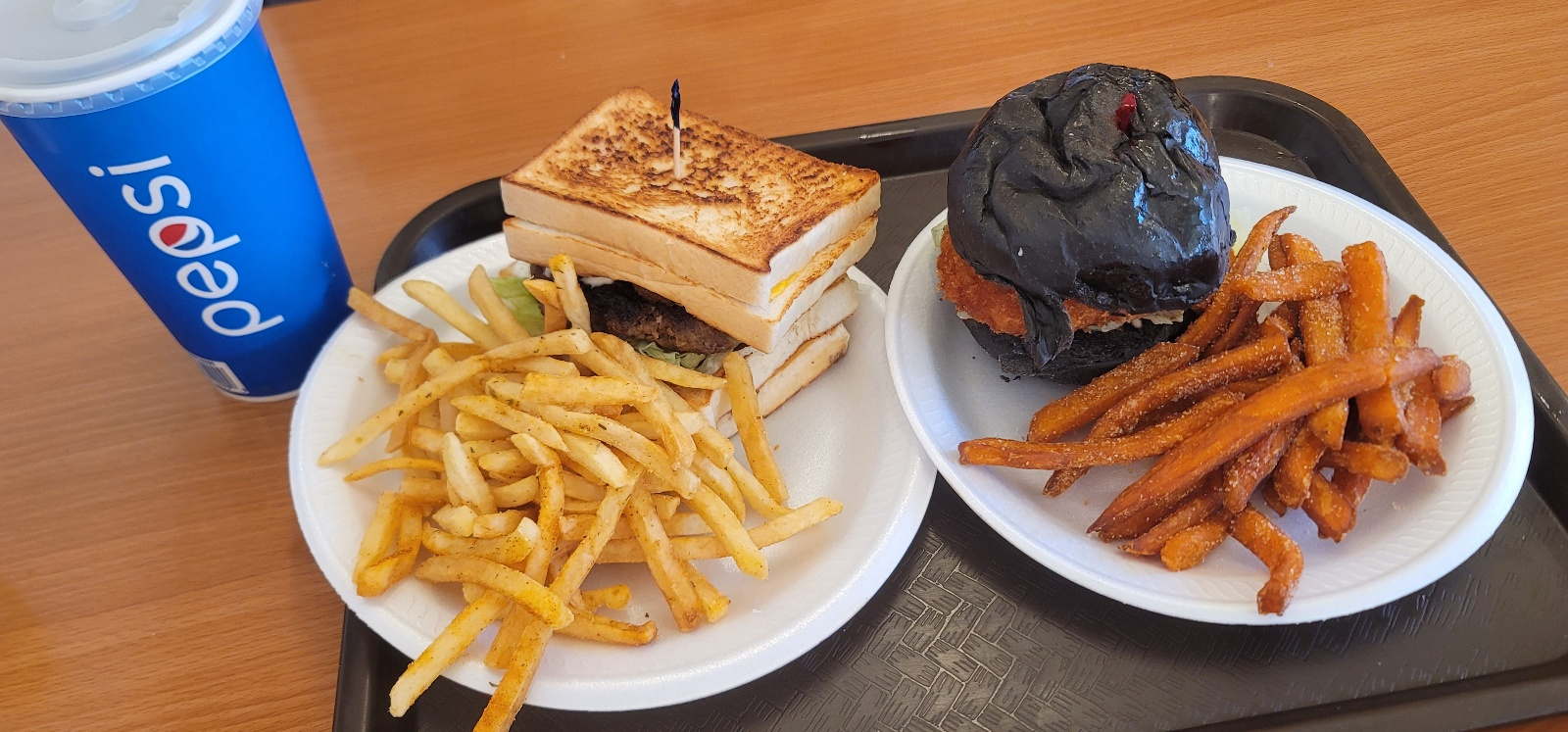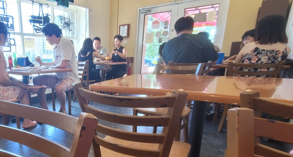 여기 노란 건물 1층에 있습니다. 내부는 그렇게 넓진 않았는데 여기 오신 분들은 죄다 한국인인 것 같더라고요. 하나는 감자튀김 다른 하나는 고구마튀김으로 시켰어요. 하나는 쉬림프 버거(맵지 않은 것)랑 그릴치즈버거를 주문했네요. 너무 맛있었어요~ 그렇게 양이 많고 그렇진 않아서 딱 먹기 괜찮았습니다. 그리고 차를 타고 다시 이동했습니다.