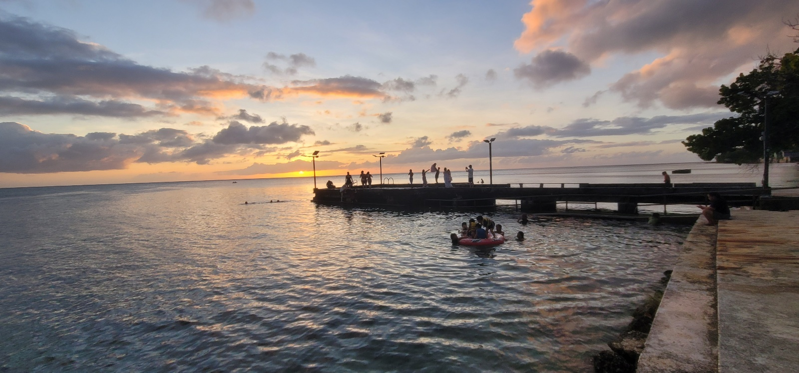현지인들이 물놀이하는 곳같은 느낌의 자유로운 곳이었어요. 바로 사람들이 물에 들어가서 수영하고 현지 아이들도 노는 곳인 것 같더라고요. 딱히 주변에 먹을 곳이나 상점이 없으므로 물이나 간식을 챙겨가시는 것이 좋겠습니다. 아침부터 출발해서 저녁 7시가 넘어서 괌자유투어를 맞히고 숙소 롯데호텔로 이동했습니다.