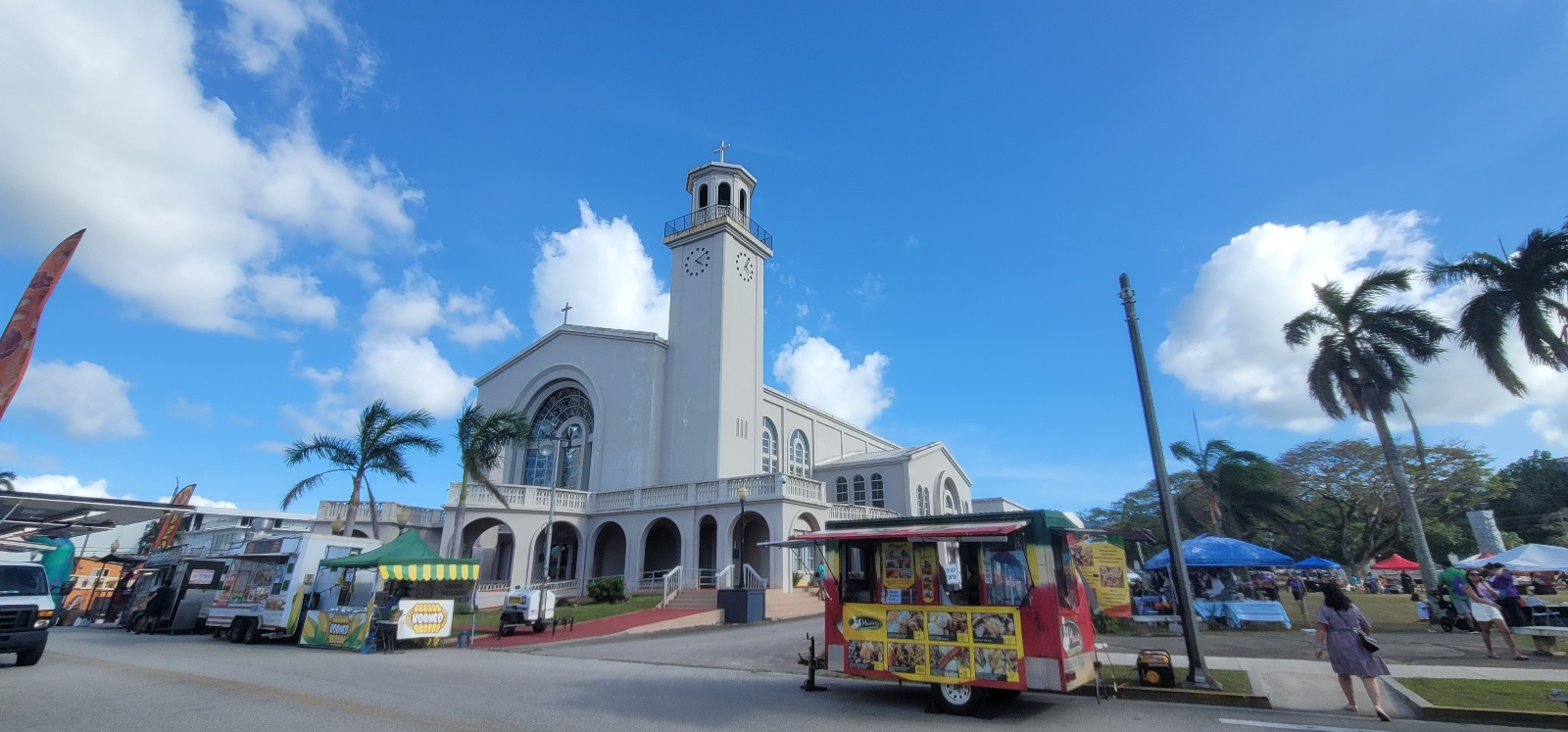 아가냐 대성단과 스페인광장으로 도착! 이곳에 축제가 열려서 현지인들이 분주하게 움직이고 있었어요. 이곳에서 행사도 했는데 롤렛판을 돌리라고 하셔서 돗자리 당첨되어서 갑자기 선물을 받았네요. 괌의 현지인들은 전체적으로 친절했습니다.