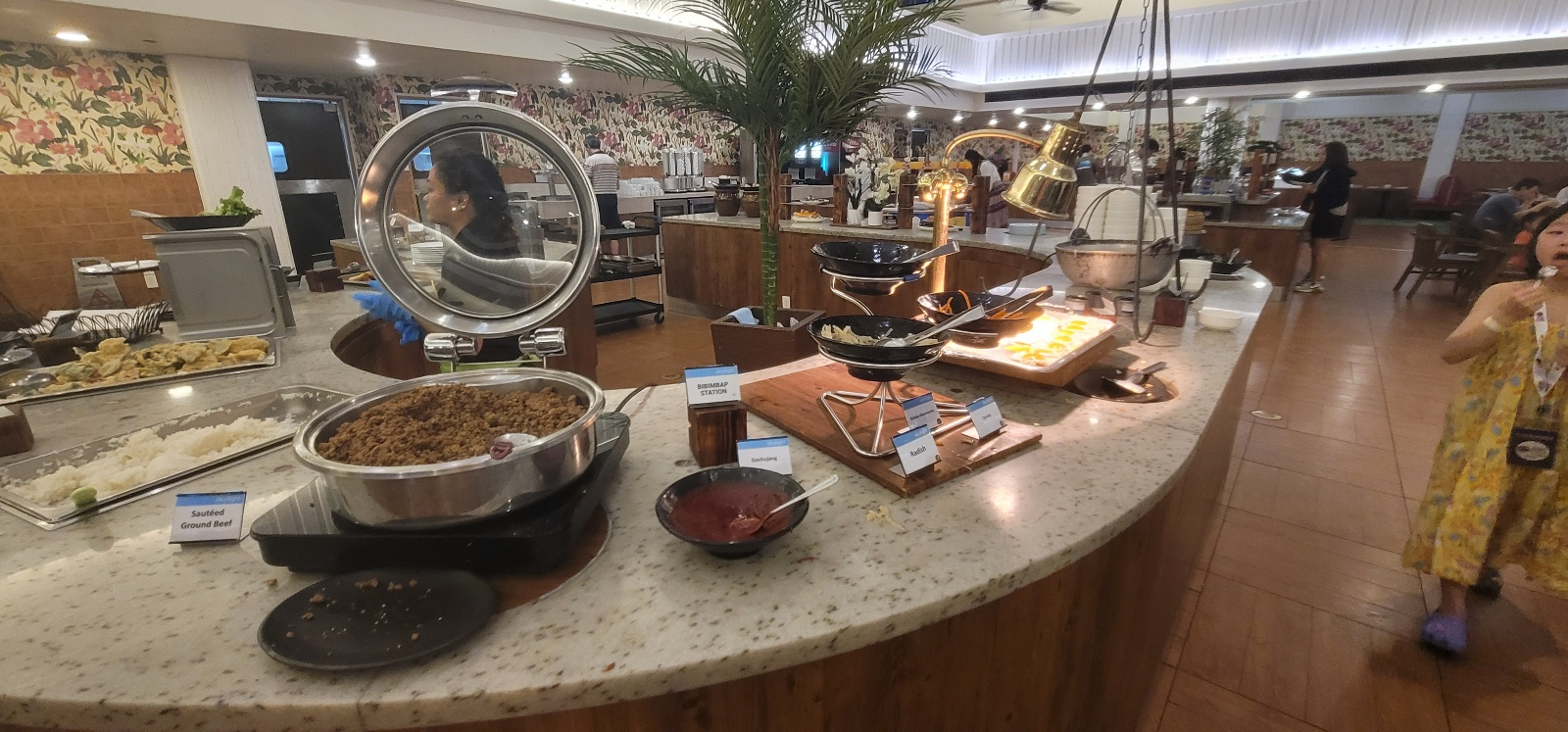 스카이라이트의 석식은 꼭 먹어봐야 한다고 그래서 이번에 먹어보기로 했습니다. 저녁에 정말 먹을 것이 많았어요 종류도 많고 역시 빠지지 않는 한국인의 김치가 있었어요. 배부르게 먹고 바로 서커스를 좋은 자리에서 보기 위해 미리 줄을 서기 위해 출발했습니다.